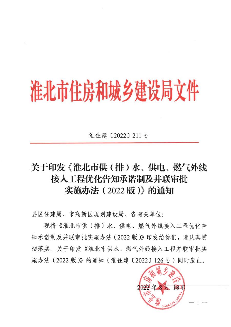 淮北市供(排)水、供電、燃?xì)馔饩€接入工程優(yōu)化告知承諾制及并聯(lián)審批實施辦法(2022版)