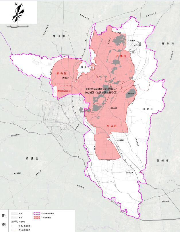 市轄相山區(qū)、烈山區(qū)、杜集區(qū)的城市規(guī)劃區(qū)