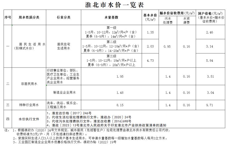 供水價(jià)格表