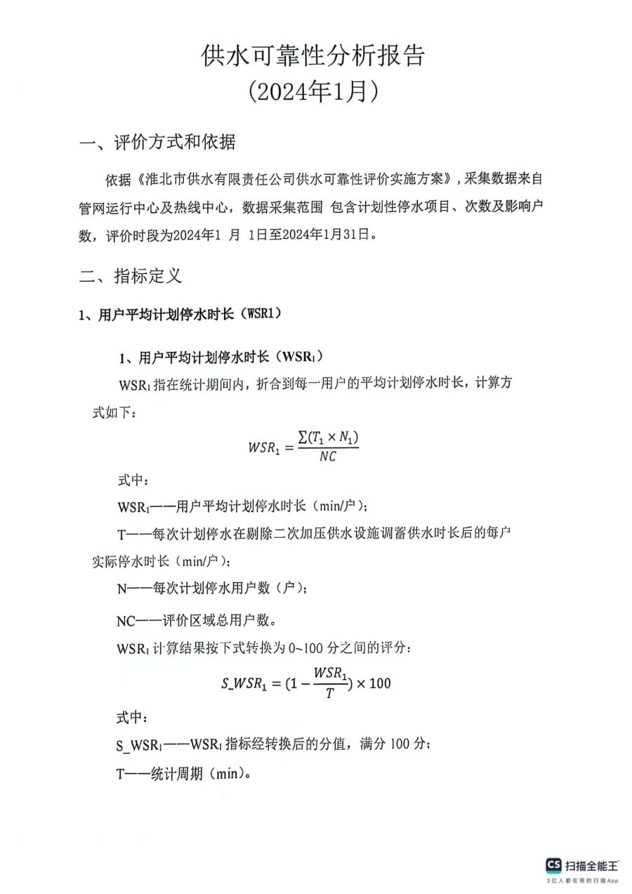 供水可靠性分析報(bào)告1月