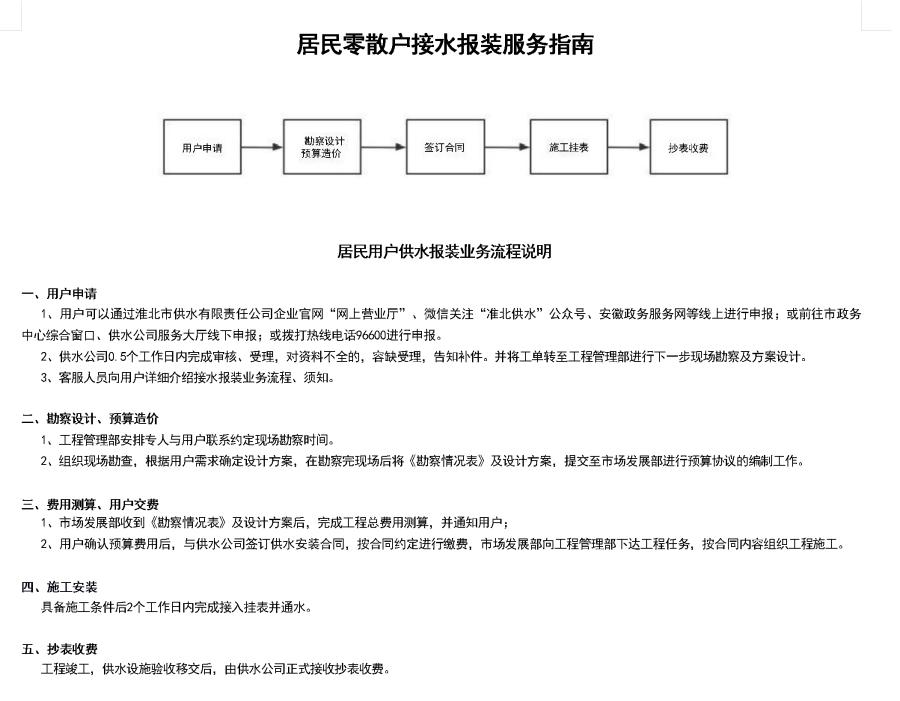居民零散戶接水報裝服務(wù)指南