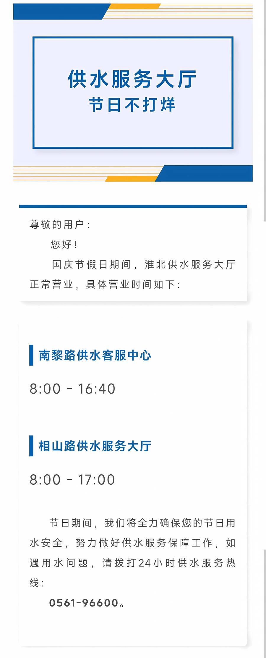 供水服務(wù)大廳國慶假期不打烊