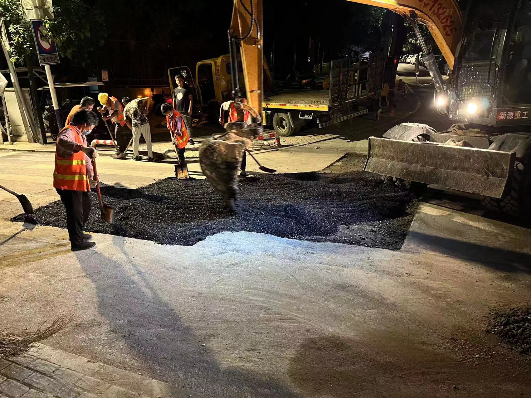 管網(wǎng)部立即對(duì)漏水點(diǎn)展開了搶修工作,漏水點(diǎn)在環(huán)孟山西路中間位置。為了確保過往車輛和施工人員的安全,經(jīng)過與交警部門協(xié)調(diào),對(duì)環(huán)孟山西路進(jìn)行了全封閉。搶修工人頂著高溫天氣,經(jīng)過8個(gè)小時(shí)的奮戰(zhàn),終于將漏水管道修復(fù)完成,確保了居民正常用水。晚上21時(shí),清運(yùn)多余的余土和開挖溝槽的回填,恢復(fù)環(huán)孟山西路正常通行。8月18日凌晨1時(shí),瀝清路面恢復(fù)完畢,開始清掃、沖刷開挖處路面的污垢。直至凌晨3時(shí),搶修工作全部完成。
